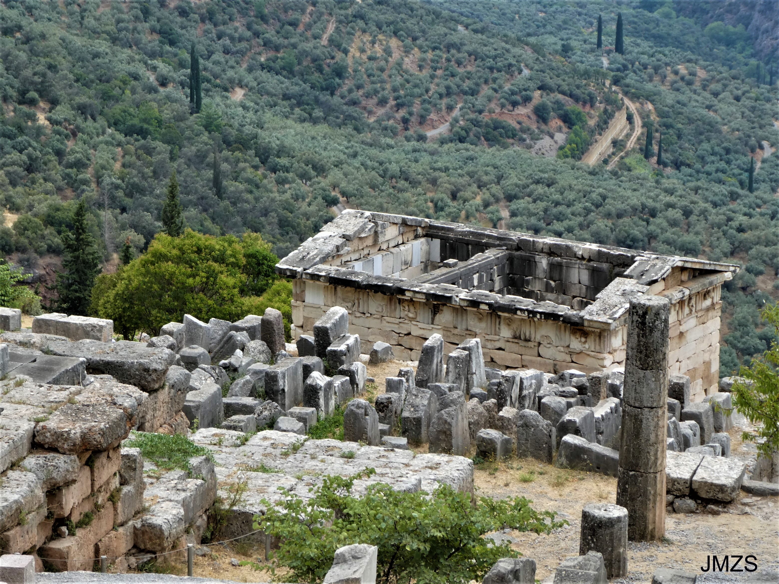 Delfos, ez munduko baizik eta unibertsoaren erdigunea. Apolo jainkoaren tenploa. Eguzkia, musika eta poesia, hiruak batera.