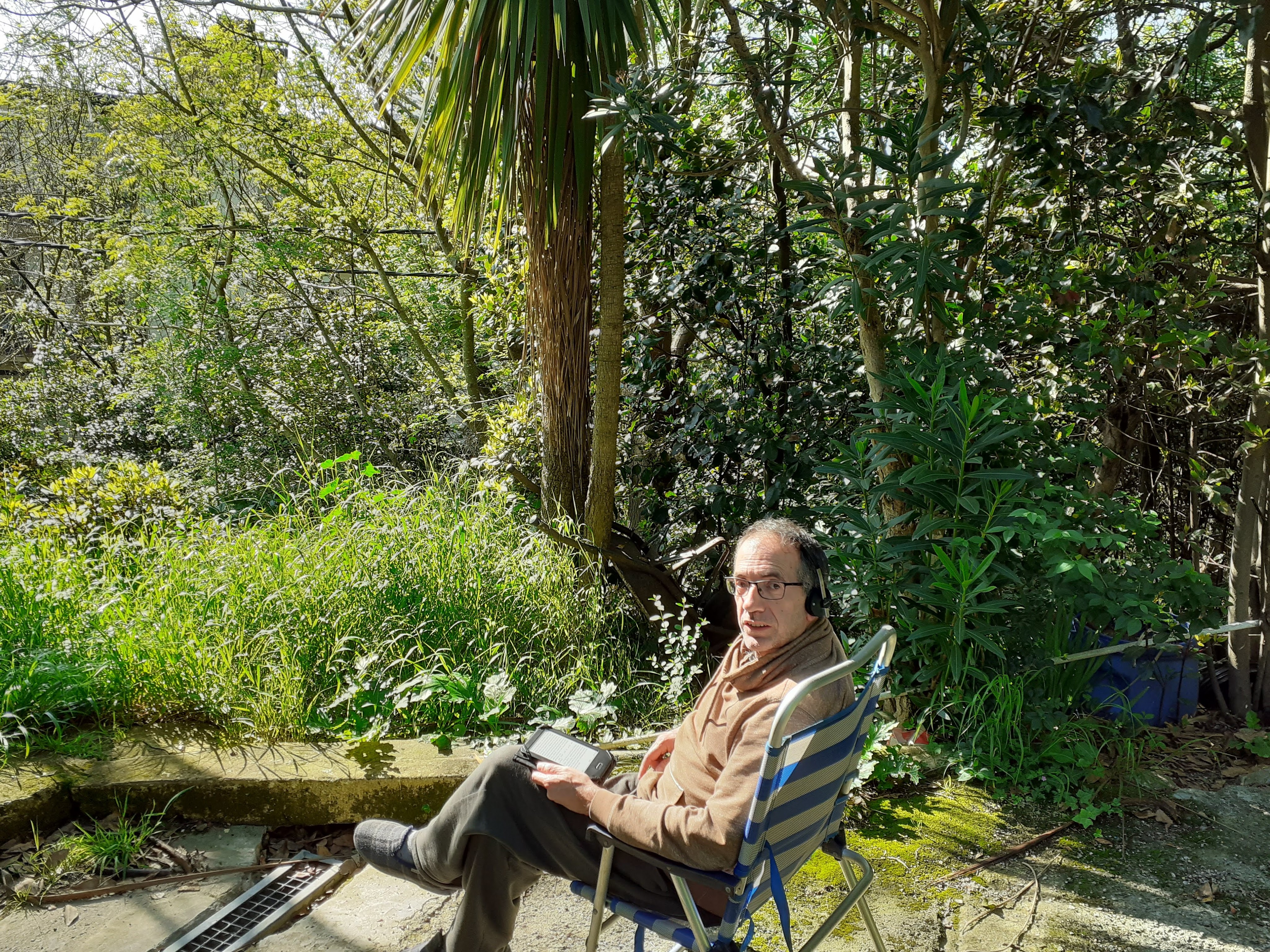 Ostiral eta larunbatean, eta gaur bertan ere etxeko lorategian egon naiz eguzkitan irakurtzen. Oso ondo egoten da, dena den, nik uste nuen hori egiteko inolako arazorik ez zegoela, baina gero ikusi dut espazio pribatuetan ezin dela egon komunitarioak baldin badira, beraz, norbaitek salatuko bagintu eta polizia etorri isuna jarri diezaguke hor egoteagatik. Hala ere jende gutxiren bistan gaude eta ez dut uste hona inor etorriko denik molestatzen.